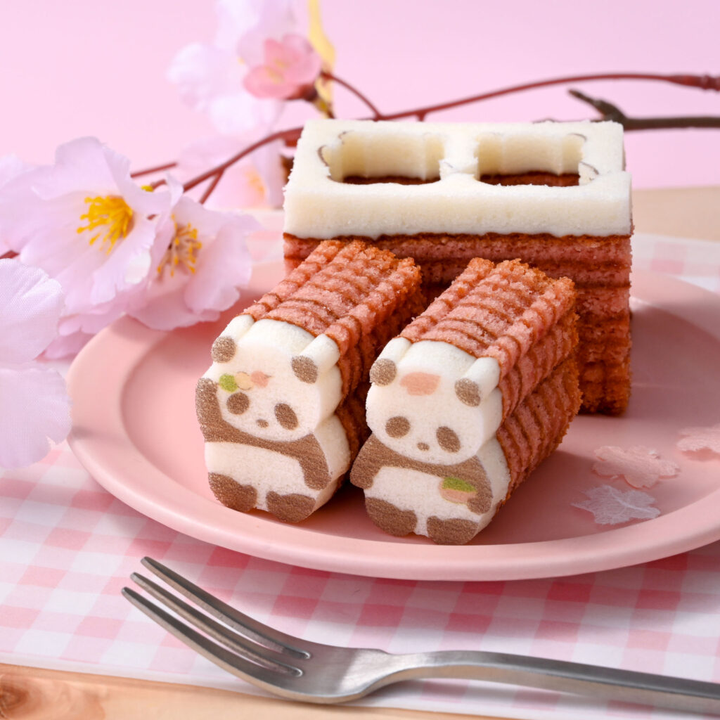 春風に吹かれて、パンダもほんのりさくら色に。待ちわびた春を知らせる、かわいい型ぬきバウムができました。