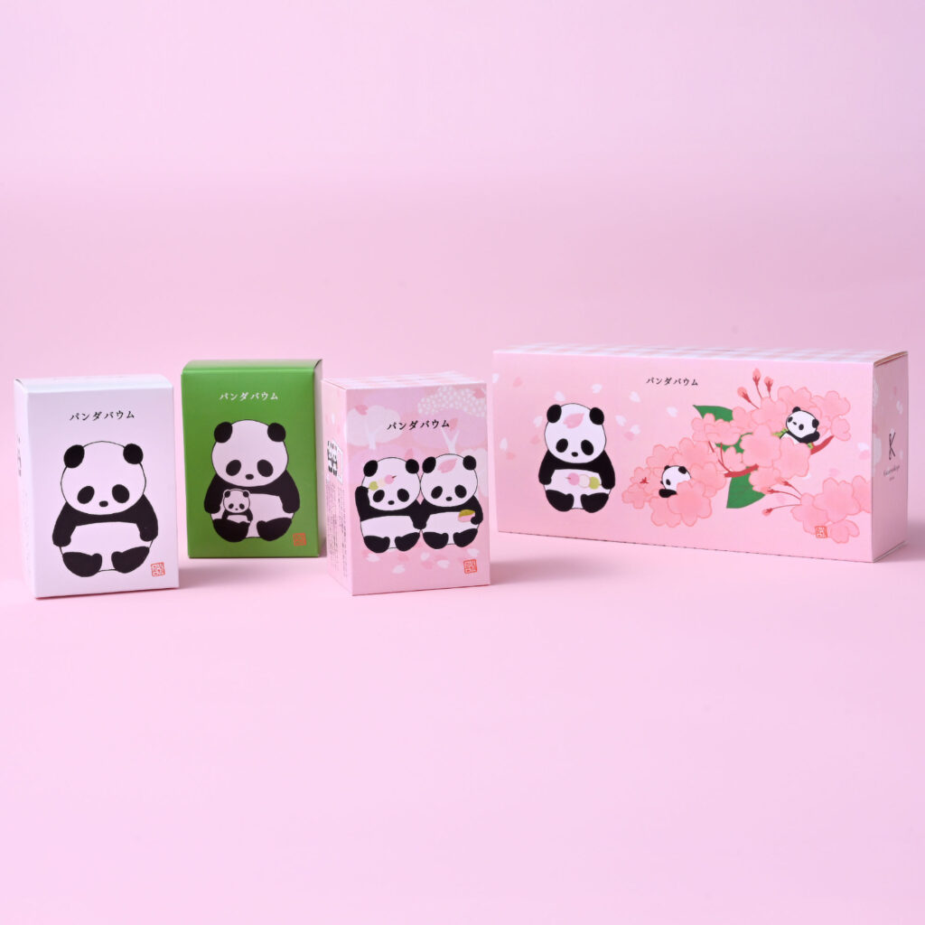 おだんごとさくら餅を手に、なんだか嬉しそうなこどもパンダ。春がふわりと香るような、さくらの味わいです。